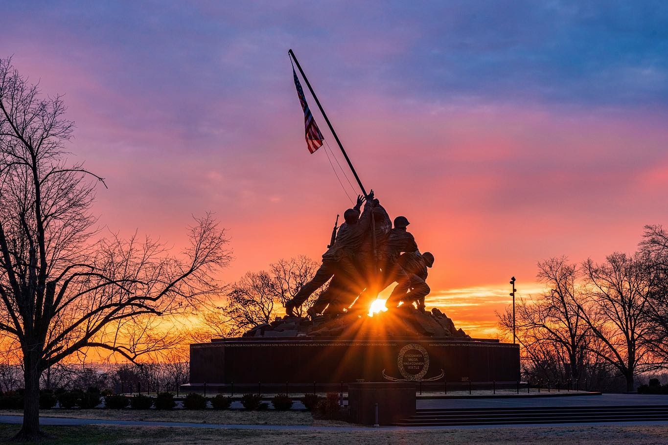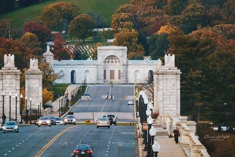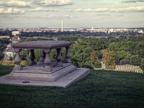 Just across the Potomac River from DC, Arlington County holds the Arlington National Cemetery, the final resting place for 400,000 active duty military members as well as President John F. Kennedy. The county also holds the U.S. Air Force Memorial with three 200-plus foot spires and the U.S. Marine Corps Memorial, also known as the Iwo Jima Memorial. The Marine Corps War Memorial honors Marines who have died in battle with a 32-foot-high bronze sculpture of World War II soldiers erecting a flag.