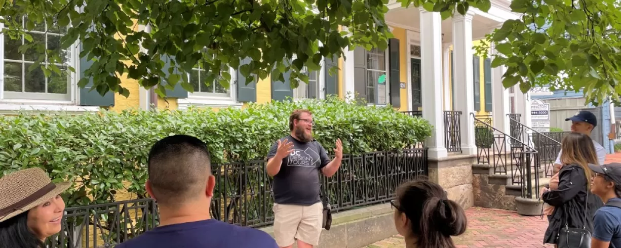 Meet your guide outside a beloved local coffee shop, Baked & Wired at 1052 Thomas Jefferson St NW. The tour is about 2.5 hours and covers approximately 2.5 miles, ending at Georgetown Waterfront Park near 33rd St and Water Street. Visit www.dcdesigntours.com to learn more and sign up.