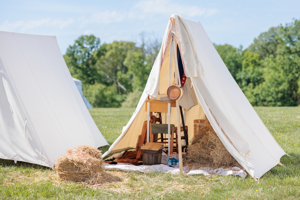 Immerse yourself in the daily life of soldiers, military officers, and the camp followers who traveled with the army as you explore a Revolutionary War encampment. At this hands-on attraction, you can touch the items inside the soldiers' tents and officer's tent, wash clothes in the laundry yard, and examine cooking utensils used by camp followers.