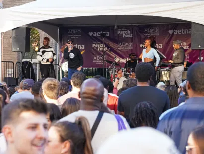 A neighborhood-wide music festival featuring live performances on porches, patios, and small businesses throughout Adams Morgan.
