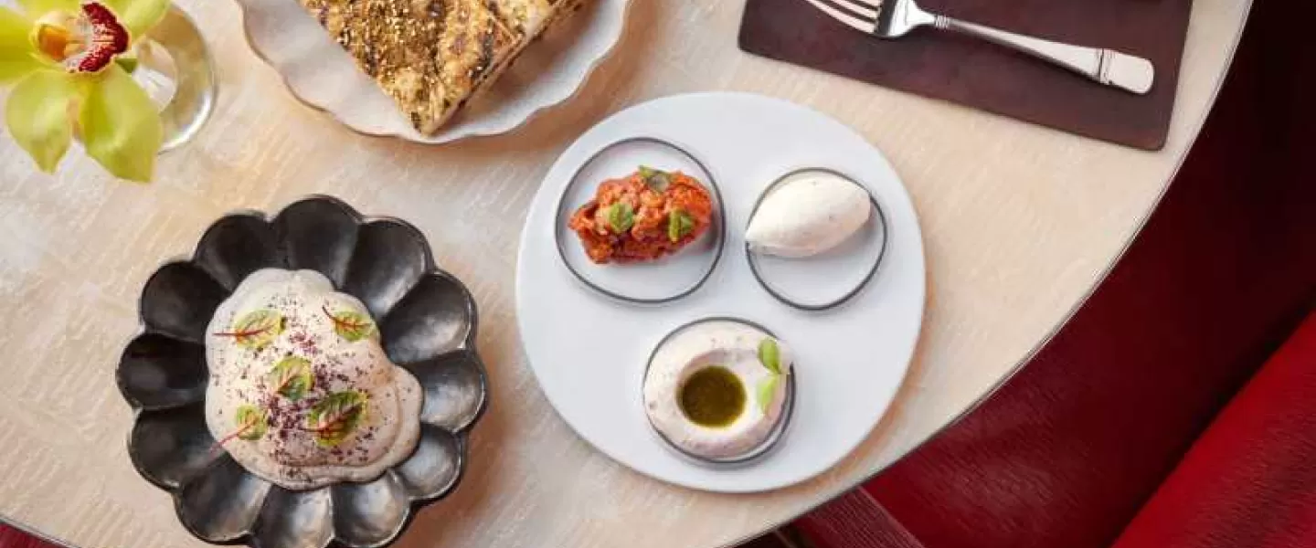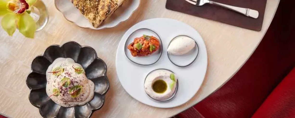 Named after the landmark Alhambra palace and fortress in southern Spain, one of the most famous monuments of Islamic and Spanish Renaissance architecture, the blending of these influences is at the heart of each of our dishes. Our menu exemplifies the beauty of cultures and cuisines coming together with sharable plates that draw on the flavors of the Iberian Peninsula and the Middle East. Showcasing the region’s rich bounty of produce and fish in a modern and convivial setting, we are delighted to present a seasonally inspired menu enhanced with the bold flavors of Andalusia.