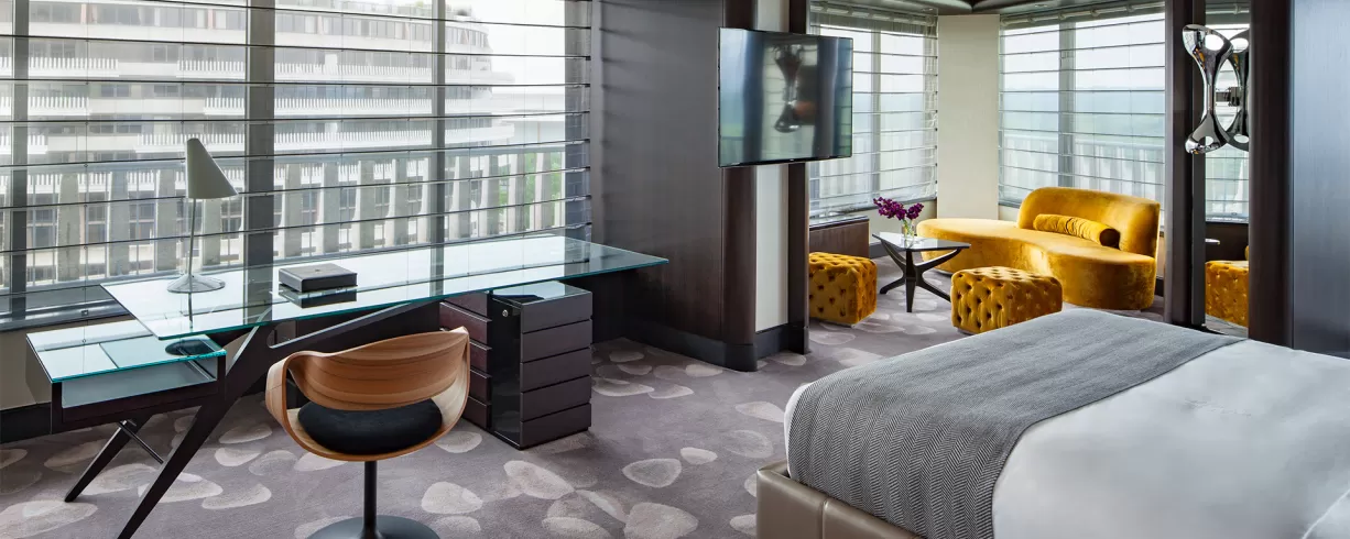 The 336 well-appointed guest rooms feature modern furniture, marble baths, luxurious linens, fine terry robes and more. From Superior King rooms to spacious Presidential and Diplomat Suites with dining areas, the hotel offers a comfortable setting for all guests.
