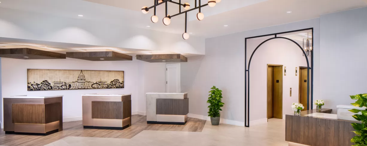 All newly renovated modern and sleek guest rooms. Directly across the street from the McPherson Square Metro Station (Blue and Orange Line). Centrally located in downtown Washington, DC - three blocks to White House, five blocks to the National Mall, Capital One Arena and the Walter E. Washington Convention Center. Complimentary Wi-Fi in all 300 guest rooms, public areas, and meeting space, complimentary use of the 24-hour Executive Business Center, Fitness Center and Indoor Pool. 24-Hour Food Pantry, ATM on property, full-service restaurant and lounge on premises, 2,000 square feet of meeting space, valet parking (only), handicapped accessible guest rooms, 20 junior suites and 100% non-smoking.